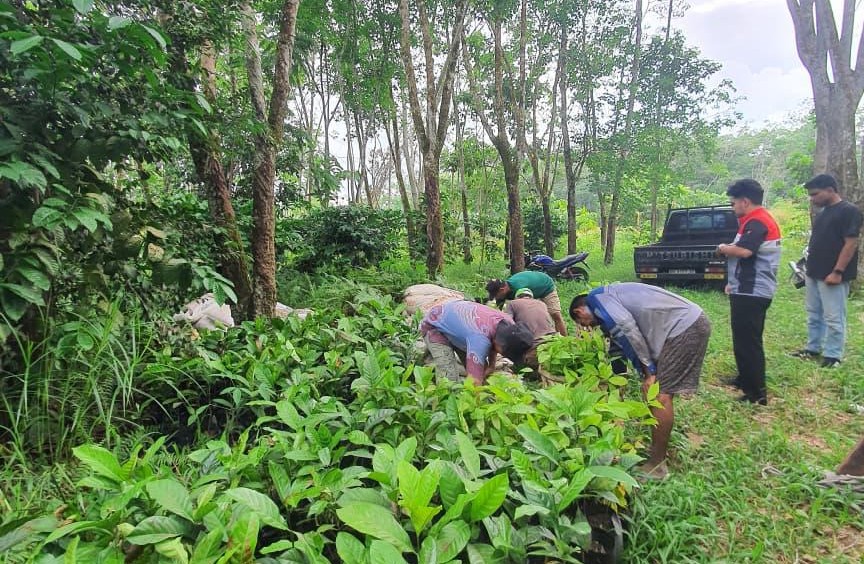 Penyerahan dilakukan secara langsung oleh tim PHR dan LPPM UMRI ke lokasi KTH Alam Pasti Jaya (APJ) Desa Pinggir. Kegiatan ini juga diisi dengan sesi koordinasi bersama anggota kelompok tani mengenai strategi penanaman, pemeliharaan, hingga pemanfaatan hasil tanaman jangka panjang. Bibit kopi dan coklat dipilih karena memiliki potensi sebagai tanaman konservasi produktif yang mampu memberikan nilai ekonomi bagi masyarakat, sementara pemberian kompos dimaksudkan untuk meningkatkan kesuburan tanah guna mendukung pertumbuhan tanaman secara optimal.