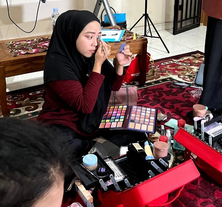 Di sisi lain, pelatihan makeup (18–19 November) yang difasilitasi oleh Melati Suminingrum membekali peserta dengan pengetahuan dasar mengenai alat-alat makeup serta teknik merias wajah tingkat pemula. Pendekatan pembelajaran dilakukan secara demonstratif sehingga peserta dapat memahami langkah-langkah aplikasi riasan secara mandiri.